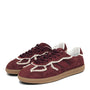 The Tb.490 sneaker is crafted from deep burgundy suede traced with contrast cream trims. Designed in a low-top silhouette sitting on rubber soles, it’s complete with classic features, including exposed stitching and the logo embossed across the tongue and sides. The cream laces feature subtle orange stripes, adding a unique touch to the design.