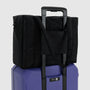 A travel bag optimized for flying: it fits under an airplane seat, on top of your roller bag, and on your shoulder. Exterior pockets keep your travel essentials within reach, including a tech pocket that fits up to a 16” laptop, and side pockets for your water bottle and boarding pass. The bag packs down into its interior detachable pouch for easy storage.
