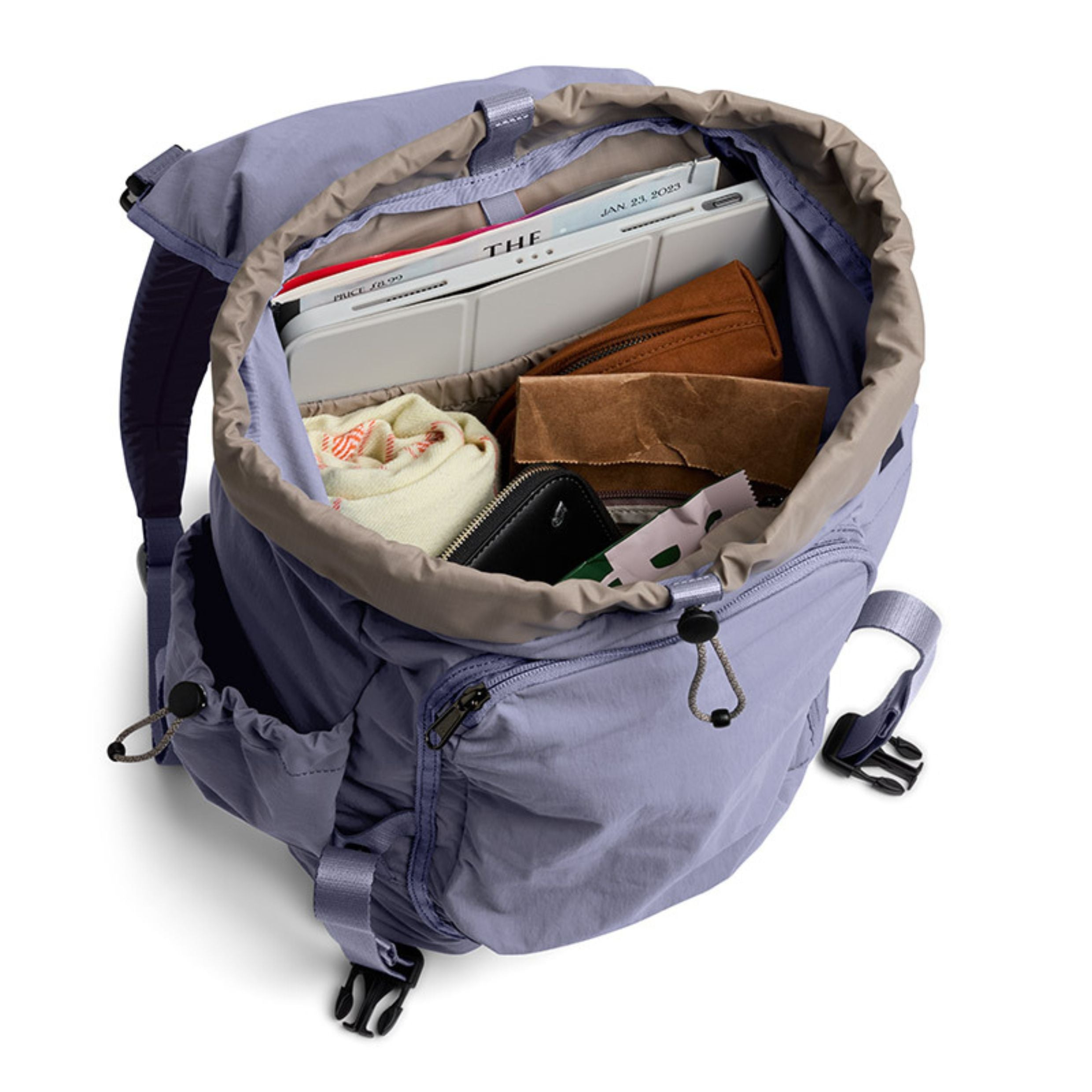 - Dual external pop pockets – one with a drawcord closure