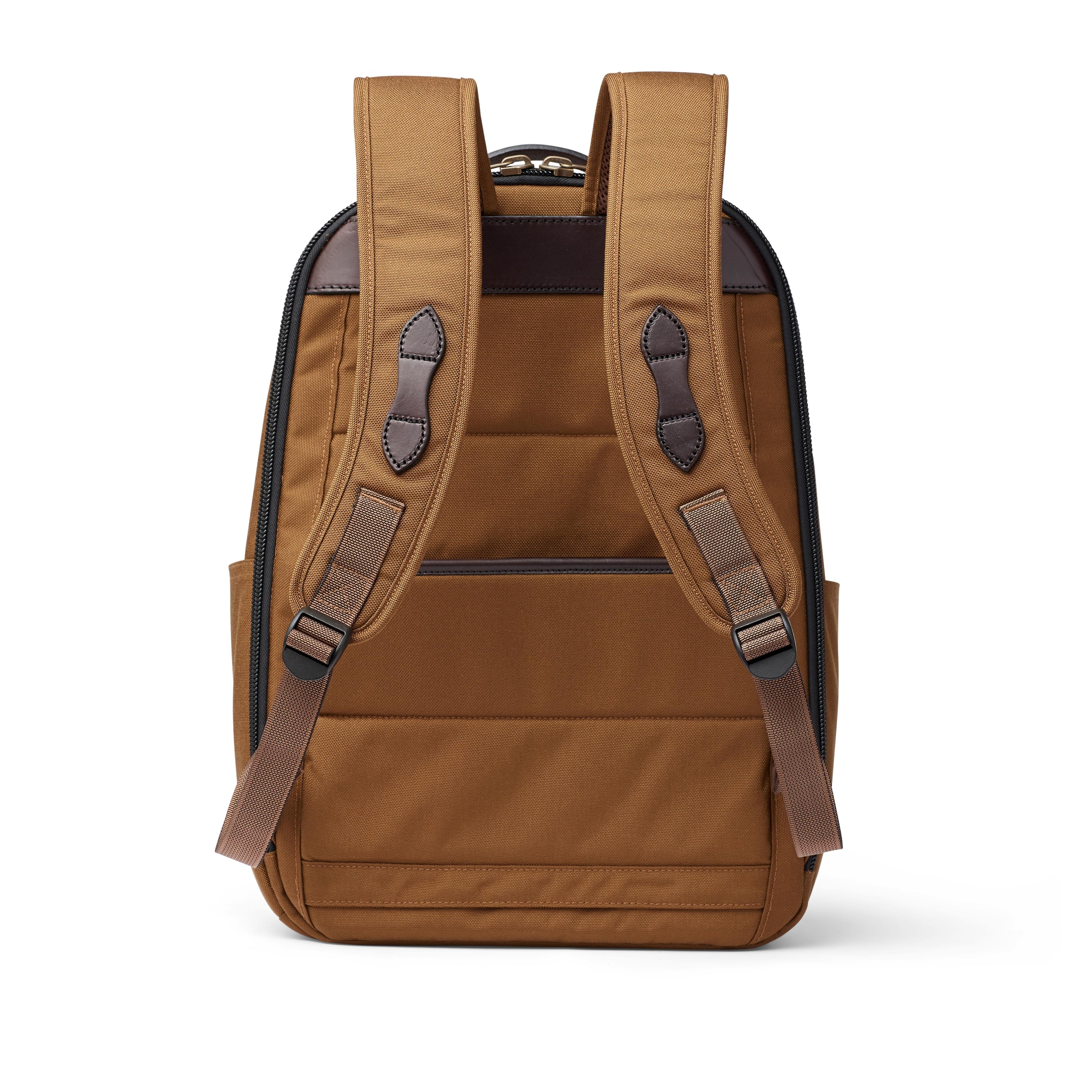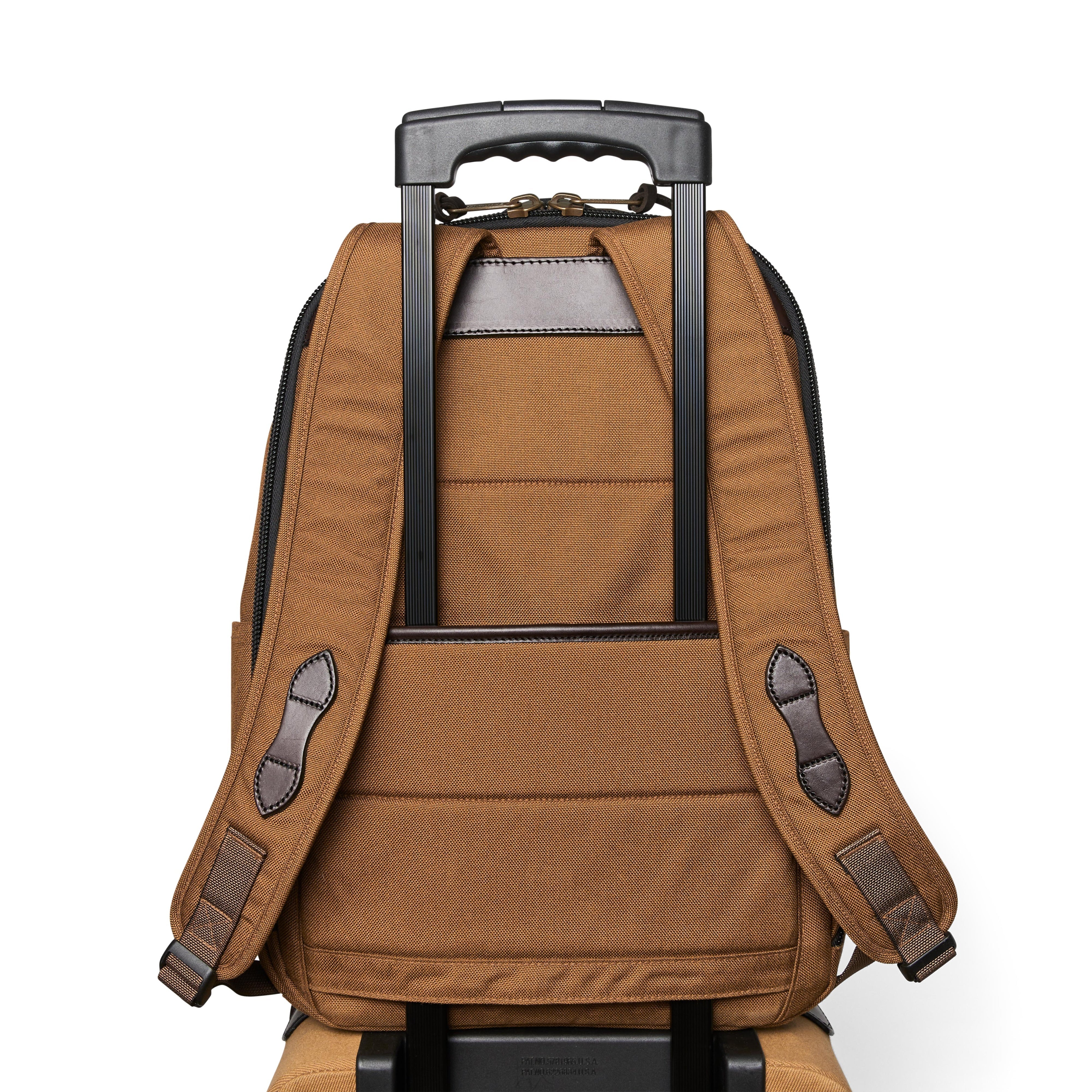 The Filson Dryden Backpack, made from durable 1000D Cordura® nylon, is carry-on compliant and built for long-term abrasion resistance. Featuring a reinforced bottom, padded 16" laptop pocket, and ergonomic shoulder straps, it combines rugged durability with travel-friendly functionality.