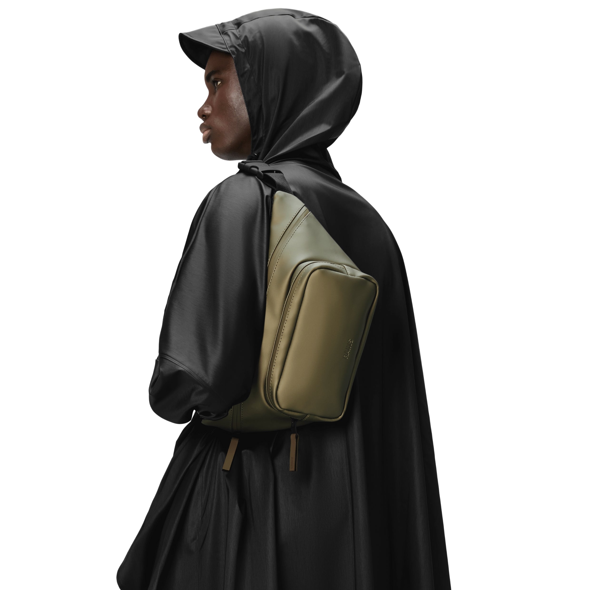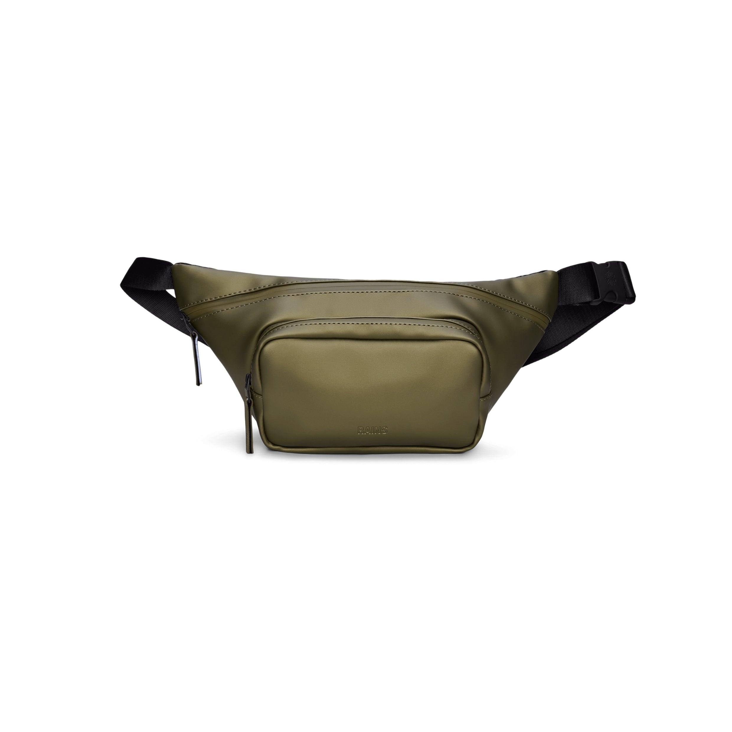 Designed for optimal functionality on-the-move, Bum Bag is a dependable everyday companion. The waterproof design boasts a roomy main compartment and a separate front compartment to keep essentials organized. It's fixed to an adjustable webbing strap which can be worn over the shoulder, cross body or as a waist belt, and fastens with a convenient quick-release buckle. Note Rains' subtle debossed logo.