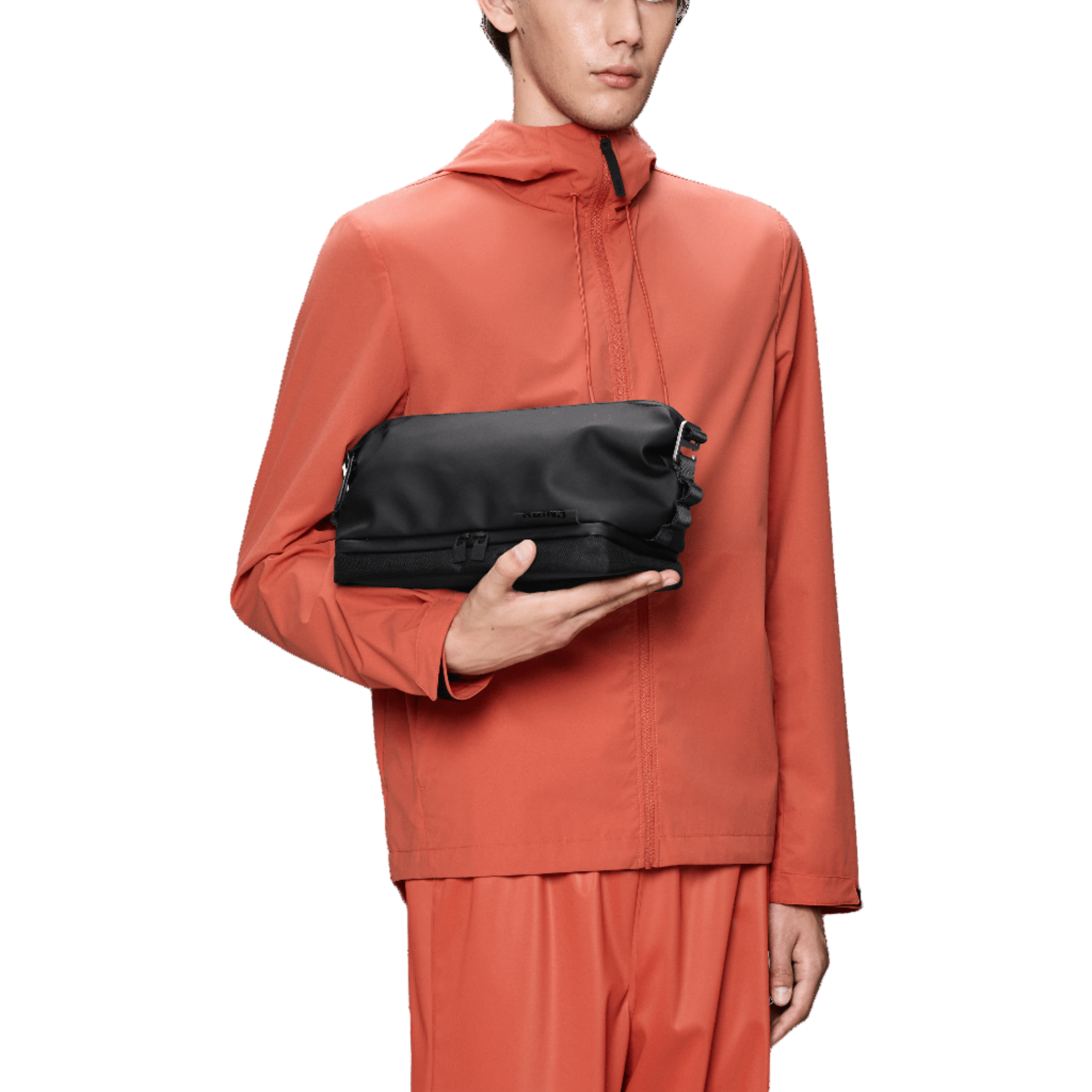 Otaru Wash Bag is cut from a mix of Rains’ signature waterproof PU fabric and waterproof woven polyester, engineered for carrying strength, durability, and a smooth feel.