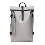 Rains' most iconic Rolltop Rucksack revised with larger proportions and additional functionality, including two side pockets.