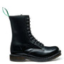 Solovair 11 Eye Zip Derby Boot in Black Hi-Shine