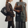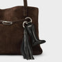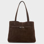 A minimalistic midi bag in dark brown suede, designed for everyday wear. The adjustable side strap lets you tailor the opening, while the vertical magnetic closure ensures easy access. Finished with hardware, cotton lining, and an interior pocket for essentials.