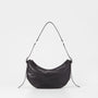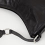 The Itami is the small half-moon bag with a slouchy silhouette. Made in black leather with an adjustable shoulder strap, decorative metal trimmings and a small interior pocket. Details include a zip closure.