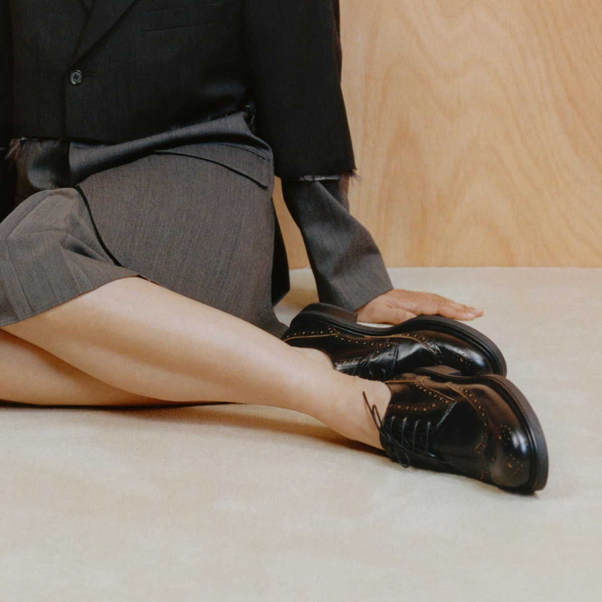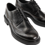Edition Freya offers a fresh take on formal footwear. The softly rounded silhouette strikes a refined balance; dressy yet grounded. The brogue shoe is crafted from black leather with raw contrasting edges.