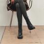 Edition Karlie blends a vintage-inspired look with a bold character. The rounded toe shape and sculpted heel add attitude to the silhouette. The mid-rise lace-up boot is made from black leather, featuring a shrunken effect.