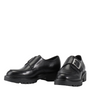 Edgy but for everyday wear. Kenova interoperates classic footwear but with a chunky twist. The monk shoe is crafted from black leather and features a large silver-coloured buckle.