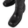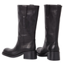 Nour is the minimalistic mid-rise boots part of the Atelier by Vagabond collection. The style is crafted from black leather with a rounded toe shape, pull-on shaft and strap details. The moulded rubber outsoles set on 57 mm block heels with a separately stitched welt. Details include leather lining and heels in leather veneer.