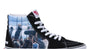 The Vans x MOCA Sk8-Hi is made with sturdy suede and embroidered textile uppers. This legendary high top shoe also includes re-enforced toe caps, supportive padded collars, and signature rubber waffle outsoles.