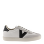 Experience the perfect blend of style and sustainability with these white trainers, handcrafted in Spain from premium leather and split leather panels. Featuring a bold "V" detail in color on the side and back and a sleek cyclist cut at the toe, these trainers are designed to turn heads. The off-white sole, made with eco-friendly vegetable oils, reflects a commitment to the environment, while the ergonomic insole—crafted from recycled materials—provides all-day comfort. A classic look with a modern conscience.